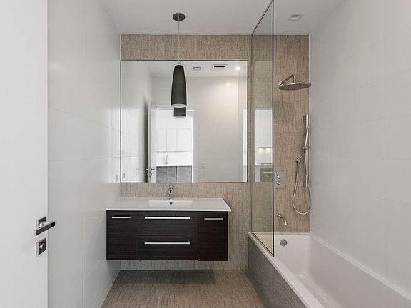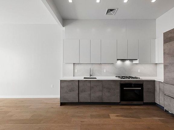 A brand new floor-through condo situated one block away from McCarren Park, this contemporary 3-bedroom, 3-bathroom home blends modern fixtures and finishes with private outdoor space. Features of this expansive, 1,351 sq. ft. home include gorgeous hardwood floors, huge windows, an open plan layout, an in-unit washer/dryer, and a pair of charming balconies. Accessed via a key-locked elevator, the home flows directly into a bright, open-concept living room, dining room, and kitchen. The living room boasts a gas fireplace and leads out onto an east-facing balcony, while the kitchen is equipped with Nolte Kitchen cabinets, cultured stone countertops, an Olympia Alabastri Di Rex backsplash, and a suite of high-end stainless steel appliances. The first bedroom sits adjacent to the living room and has a large reach-in closet and easy access to a pristine full bathroom. The remaining bedrooms are situated on the opposite side of the home. The second bedroom possesses a full en-suite bathroom and a private closet, while the master bedroom features his-and-hers reach-in closets, a large en-suite bathroom, and exclusive access to a west-facing balcony. Nestled at the convergence of Greenpoint and Williamsburg, 135 Bayard is a boutique condominium brought to life by leading real estate development firm, M Development. The building is surrounded by a number of trendy restaurants, bars, cafes, and shops, particularly those that line Manhattan and Graham Avenues. Nearby subway lines include the G and L. Storage units are available in the basement.