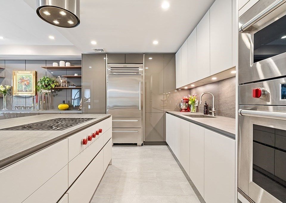 Truly magnificent sunny corner unit, completely rehabbed and reimagined with modern architecturally crafted layout plus incredible designer finishes. This open concept unit provides breakfast bar, full dining room and spacious living room with fireplace. High end kitchen finishes, including custom cabinetry expanding seamlessly into the dining room. 2+ full bedrooms and 2 full baths, including a 3rd flex-use bedroom; slide back the convertible wall to create an open den or keep closed for a private bedroom-like / office area. One assigned parking space, but also incredible public transit access, tucked perfectly in between the C and D lines. Homes like this, so thoughtfully and meticulously designed, rarely come on the market.