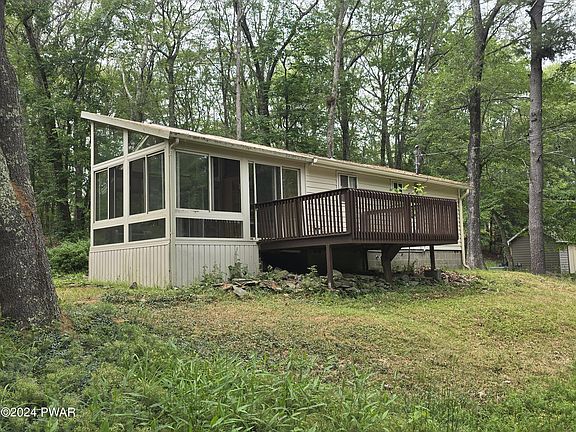 Come see this house with lakeviews on a corner lot in the desirable Delaware Valley SchoolDistrict. Beautiful four seasons room with heat and air conditioning that you can sit, relax and enjoy allyear round. Home offers a large side deck for entertaining and a storage shed for all your outdoor needs.This is your opportunity to own a piece of lake life with low taxes to live all year round or as a vacationgetaway. Community offers beach access, inground pool, playground and much, much more.