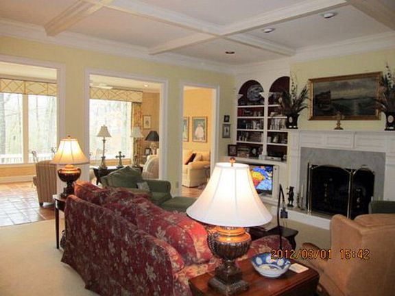 Classic style. Master and guest BR on first floor. 2 BR & 2 BA plus bonus rm upstairs. All bedrooms have private bath. Stunning foyer with faux finished by artist Bob Christian. 10' ceilings. 2.96 acres borders Wolf Creek. Large entertaining deck with hot tub - 9' custom fire pit - steam shower.