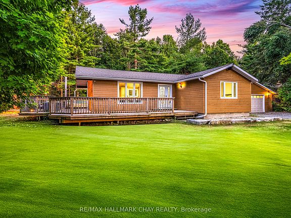 Beautifully Maintained 3 Bedroom Ranch Bungalow Nestled On Large 114 x 150 Ft Corner Lot, Surrounded By Mature Trees With Lots Of Privacy! Fully Finished & Insulated Detached 2 Car 576 SqFt Garage With Side Entrance, Gas Heating & 60 AMP Electrical Panel, Plus Additional 12 x 25Ft Carport Attached. A Mechanics Dream Or Perfect For Extra Storage! Inside Boasts An Open Concept Layout With Hardwood Flooring Throughout, Beautiful Cathedral Ceilings With Rustic Wood Beams, & Large Windows Throughout. Spacious Kitchen Features Granite Counters, Stainless Steel Appliances, Backsplash, Double Sink, & Large Centre Island, Perfect For Preparing Any Meal With Lots Of Extra Cabinet Space! Conveniently Combined With The Dining Area, Walk-Out To The Backyard Wrap Around Pressure Treated Wood Deck, Ideal For Hosting Family Summer BBQ's Or Enjoying Your Morning Coffee! Living Room With Gorgeous Stone Accent Electric Fireplace & Large Windows Overlooking The Front Yard. 3 Large Bedrooms Each With Closet Space & Vaulted Ceilings, Plus A 4 Piece Bathroom With Granite Counters. Backyard Is Surrounded By Mature Trees, Enjoy Tons Of Green Space Perfect For Children To Play Or Add Your Personal Touch! Insulted Crawl Space With Heater. Heat Pump & Ductless A/C Unit (2020). Hardwood Flooring (2018). Granite Counters (2018). 200 AMP Panel In Home + Separate 60 AMP Panel For Garage. Asphalt Shingle Roof (2018). Backyard Deck (2018). Water Filtration System (2023). Perfect Location Just 5 Minutes Drive To Friday Harbour Resort With Activities For The Whole Family To Enjoy, 4 Minute Walk To Big Bay Point Golf & Country Club, & 2 Minutes Drive To Big Bay Point's Dock! All While Still Being Just 15 Mins Away From Barrie, Park Place Plaza, Groceries, Shopping, Parks, Schools, & Highway 400!