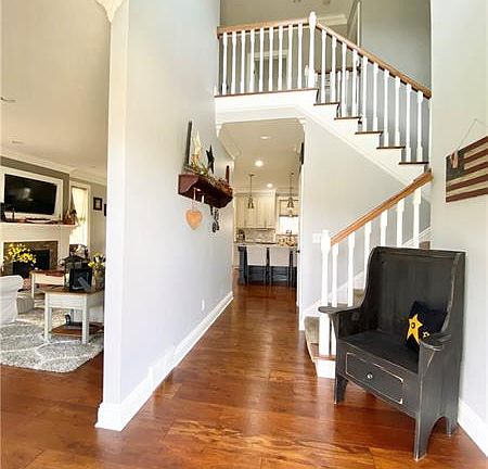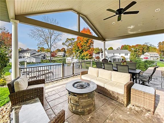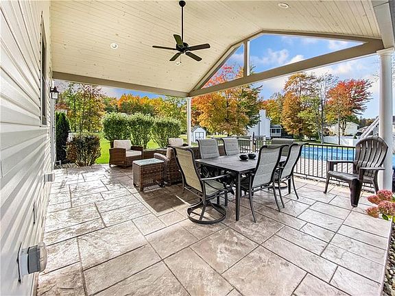 Enviable upscale custom quality dynamically combines with sophisticated Southern-style Colonial architecture. A maintenance free exterior is built to last, designed with aesthetically pleasing architecture presenting a row of dormers, shaker gable ends and resilient hardy plank trim. Tuscan columns rise to meet the period-inspired portico framed with intricate dentil moulding while extending a cordial welcome into a 2-story entry. A cozy fireplace anchors the expansive sundrenched living room brimming with natural light. An enviable gourmet kitchen showcases beautiful custom cabinetry, granite countertops, stainless appliances, coordinating backsplash and eat-at island. Owner's suite is sensationally-spacious offering a reading nook, unparalleled en-suite bathroom underscored in ceramic and featuring his and hers sinks, centrally placed soaker-tub, ceramic shower and walk-in closet the size of a large room! Main floor laundry, finished basement, stamped concrete covered patio, pool.