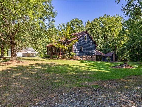 Amazing 3 Bd, 2 Ba Cape Cod w/Sunroom on a Tranquil & Private 6.85 Acre Lot. This extremely well maintained home offers LOTS of Special Features & Amenities (see Features & Upgrades attachment), including a Full Walk-out Basement, Floor to ceiling Brick Fireplace w/Hearth & Mantle and Primary Bedroom on Main Level. Full Kitchen Remodel in 2014 includes all SS appliances, Built-in Oven & Microwave, Gas Cooktop on Center Island with Overhead Exhaust, Granite Counters & Custom Cabinetry w/Pull-outs. Relax on the 21’ Front Porch or Rear Deck that leads to a Fenced-in Area for your fur babies. The Large Detached 28’x36’ Garage/Workshop is fully equipped with Loads of Extras and an additional Storage Shed w/Wood Burning Stove for back-up heating. Located just off of NC-87 with only a short drive to Burlington, Greensboro, Elon University, Shopping/Dining and major highways. BUYER INCENTIVE...seller's are offering up to $10,000 in closing costs with acceptable offer