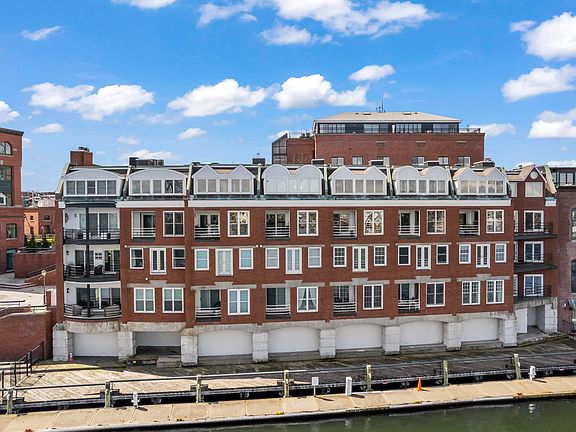 Wake up to this coveted location EVERYday! Enjoy a front row seat on your juliette balcony to watch all the activity on the bustling Piscataqua River as the breezes soothe your soul. When you're ready to experience all that Portsmouth has to offer: theater, a mirad of eateries, Prescott Park, shops & museums, just step outside your door! Unit 4 at HARBOUR PLACE is conveniently located on the courtyard level where you park your car in the secure garage with dedicated storage for your golf clubs or surf board. Stroll the wide alleys of brick & greenery as you greet your neighbors or sit for a convivial exchange. This unit's open floorplan lends itself to entertaining. Granite kitchen with cherry cabinets, SS Bosch appliances and seating for 4 at the bar. It's open to the stunning dining/living area with built-in cabinetry and mesmerizing waterviews! The oak floors throughout are in pristine condition. This level offers a home office just off the welcoming entry and a powder room as well. Upstairs you'll find a generous primary en-suite with a seamless glass shower/tub, dressing area with double sinks and abundant closet space. Superb waterviews can be enjoyed as you open your eyes! Another bedroom is located down the hall with another full bath and separate laundry. A very special offering indeed!