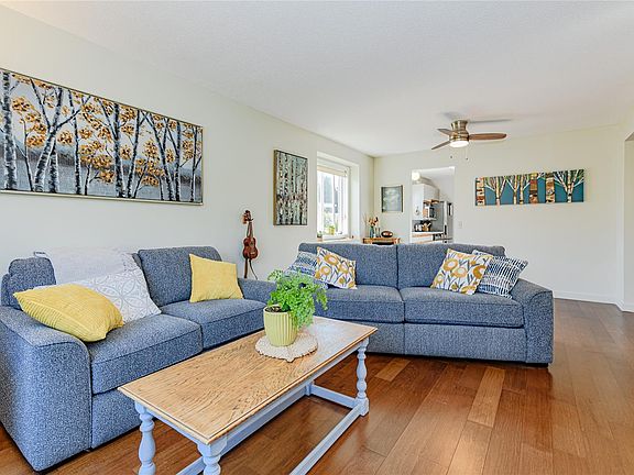 Retire to the Brinkworthy life in this inviting and well-cared-for home, perfectly situated near the community clubhouse in one of the park’s most desirable locations. This two-bedroom, one-and-a-half-bath gem offers a lovely private garden filled with easy-care perennials, plus a carport and a convenient gardening/storage shed. The large living room features warm wood floors and a peaceful outlook onto a beautiful golden chain tree and landscaped garden. Beyond French doors, a bright sunroom/sitting room captures mountain views — an ideal place to relax with morning coffee or a good book. The spacious kitchen includes a gas stove/range and plenty of room for casual dining, leaving the adjoining dining room open for repurposing as a hobby area or additional lounge space. Brinkworthy is a 55+ ownership community.