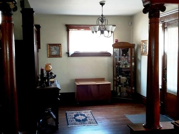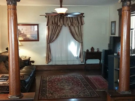 Large brick colonial home converted from a duplex. Very convenient location close to schools, shopping, hospital and public transportation. Enter through the spacious foyer surrounded by original wood columns and beautiful wood work. Living room offers leaded glass windows, original hardwood floors and 100 year old pocket doors that open to the great room. Gas fireplace in great room surrounded by brick and a stone mantle. Second level offers office with a door that opens to the second level deck. Four car garage with cement floor. Professional installed wood burning stove attached to the furnace warms the entire house through out the colder months and also saves on gas bills. This home could easily be converted to a triplex for great income opportunities!
