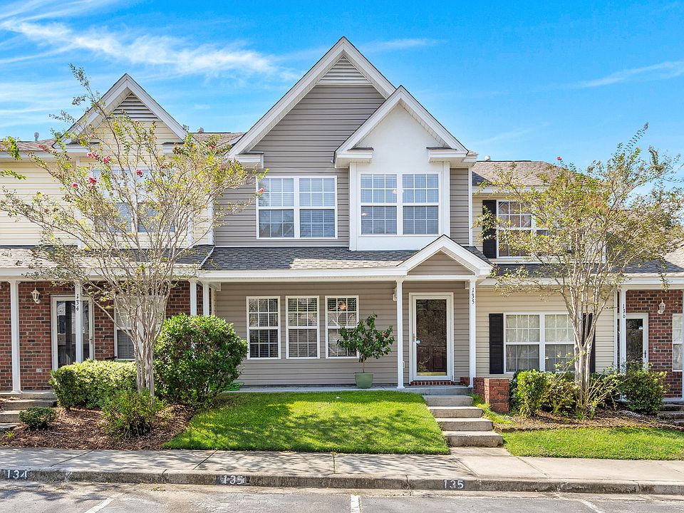 Welcome home to this beautiful townhome located in the highly sought-after Persimmon Hill subdivision in Goose Creek. Walk to your neighborhood pool, grocery store, restaurants, and fitness center! The Ireland FLOOR PLAN FEATURING plenty of storage with 3 bedroom and 2.5 bath feels welcoming as soon as you walk in the front door! An open concept main floor makes excellent use of space with a kitchen, pantry, half bath, living room/ dining combo and walk-in laundry room. The home features beautiful laminate flooring throughout the first floor and plush carpeting upstairs. The layout and flow of this home are ideal for entertaining...or just relaxing. Upstairs, you'll find two generous bedrooms at the front end of the home that share a bathroom.The spacious main bedroom features a vaulted ceiling, big walk-in closet and a large main bathroom. The HOA covers exterior maintenance, Trash pickup, water service, sewer, lawn care, pest control, exterior insurance, and pool access. Come take a look at one of the best options currently on the market!