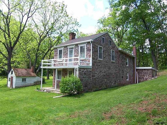 Great stone expanded farmhouse with stone & log built barn on 3 acres! Stream on the side of the property along private drive! Wood fireplace in living room, family room w/stone walls on 3 sides w/ceiling fan, balcony off BR2 and walk-in closet in BR1! Great privacy - live in nature & soak up the sun in peace! Tranquil, solid, clean & neat!