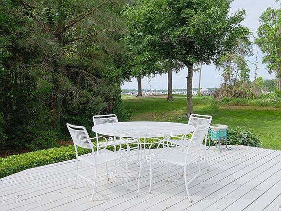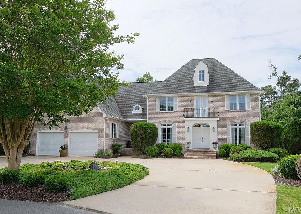 Opulent in Mood. Functional in design & a touch of France w/ironed balcony. Dbl door entry w/center hall foyer separates living & dining rooms in this gracious home. Family area & kitchen located on the back of home w/ views of the Albemarle Sound. & #16 Green. Newly remodeled kitchen with stAinless steel appliances, butler’s pantry and quartz counter top. Hardwood floors and two new fireplaces added. Backyard access to The marina and access to Clubhouse, Swimming Pool.