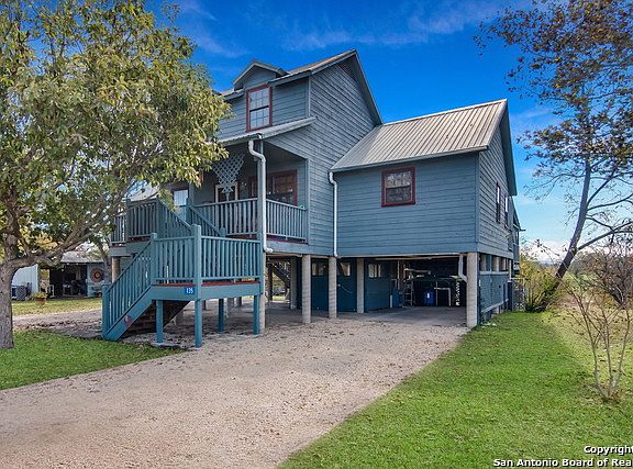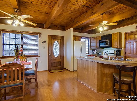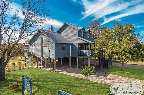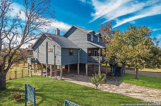 Enjoy Life on the River! Sunset sparkling on the waterfall, abundant wildlife, and a hot tub to enjoy it in. The views alone are worth the price! Nestled in a quiet rural setting, far from the traffic and stress, you'll enjoy the tiled kitchen, massive stone fireplace, open floor plan, amazing balconies, and extra room for occasional visitors. The upstairs Loft is large enough for office or extra BR to hold holiday company. Great for a private hill country getaway or your tranquil primary residence. See it!