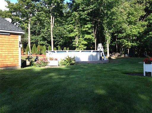 Almost an acre. gorgeous professionally landscaped with above ground pool. Oversized Garage. Recent covered porch with pressure treated deck and railings. Woodstove. First floor Kit LR formal dining. French doors highlight. 3 bedrooms and bath on 2nd floor. dead end street for your own private parklike setting.Recent re roofing. boiler replace within the last 4years, 200amp circuit breaker electrical upgrade with additional 60 amp service in the oversized detached garage.