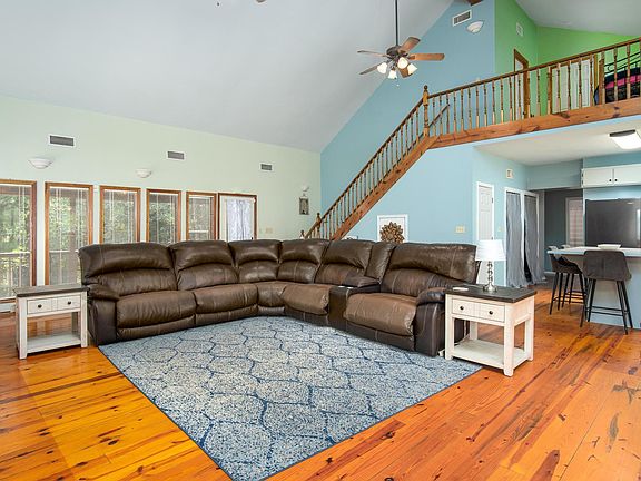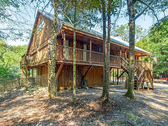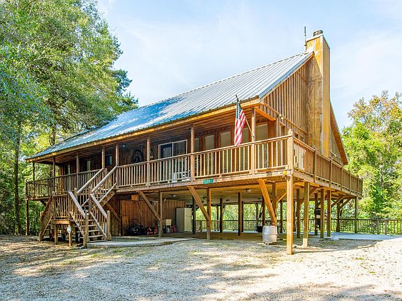 This unique peaceful and private 3 bedroom cabin overlooking Black Creek is everything you could ever want in a private retreat or primary residence. Features include hardwood pine floors, fireplace, soaring ceilings, abundance of windows, and an enormous wrap around deck overlooking the beautiful creek. Kitchen has plenty of storage, a center island and new appliances. Sits on 1.85 acres with 300 ft of water frontage. This beautiful home also includes furnishings. Come see this beautiful immaculate cozy home today!