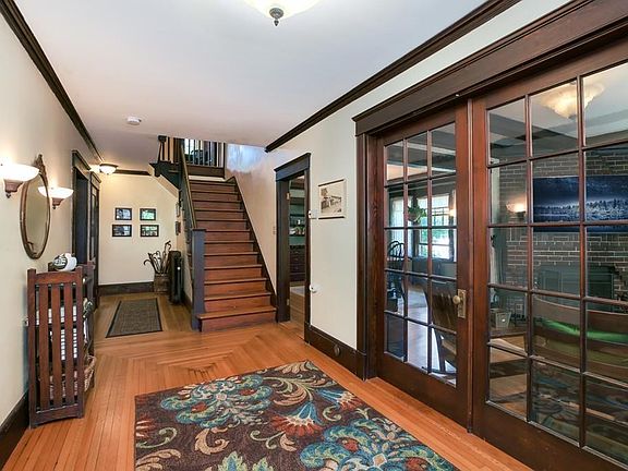 Welcome home! Come visit this Arts & Crafts Style home on a picturesque, oversized corner lot with beautiful period features, open floor plan and huge wrap-around screen porch. The grand entry foyer welcomes you to a comfortable family home with many outstanding features including 5 bedrooms, maple hardwood floors, eat-in kitchen with custom cherry cabinets, large home-office with wrap-around windows, new stainless appliances and over 22 ft. of countertop space, walk-in attic storage, huge walk-out basement, 2-car detached garage with utility room, outdoor children's play area with custom treehouse, swings & slide. Fabulous location in a great neighborhood within walking distance to Mansfield town center shops & restaurants, schools, library, commuter rail station and recreation areas. 5-10 min. drive to shopping centers & routes 140/95/495. Upgrades include new patio/grill area (2014), new kitchen appliances (2017), new gas water heater (2018). Don't miss this neighborhood beauty!
