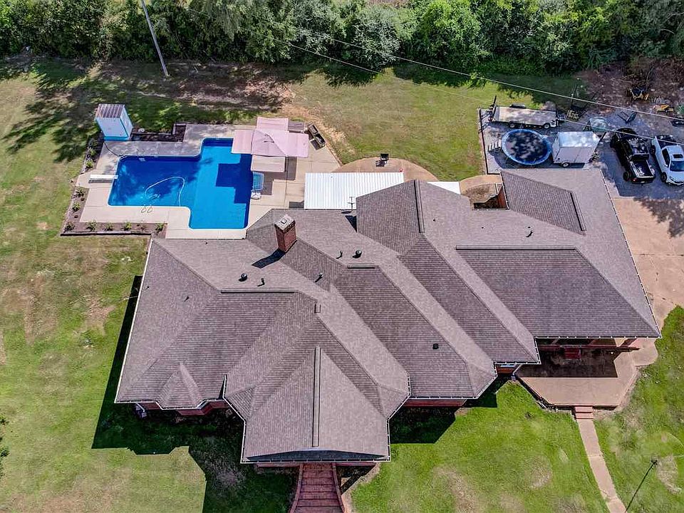 Executive living at its best! Come home to 135 Cidero Lane, Raymond, MS. Boasting of approximately 5,051 square feet, this home has been fully renovated over the last 7 years. The first remodeling phase was at the end of 2014, from the garage through to the kitchen. The second phase was from the end of 2015-may 2016 and included the living/great room, dining room and primary bedroom suite, complete with two office spaces or could be used as a workout room. In 2018 the garage doors were replaced, gutters added, and a beautiful 20x41x36 pool. (Outdoor restroom added 2021,) 2019 A new covered patio with lighting and fans. New insulated windows were also installed along the front of the home and the two-bedroom windows on the backside. 2020 added the 'Nest' thermostat. 2021, Instant hot water was installed to the primary bedroom side of the home, Restroom facilities were added in the shop. Beautiful custom blinds were added at the end of 2021. 2022 saw a new outdoor kitchen space that can easily be modified for new owners. As you can see, the sellers have been enjoying updating this home to make it one of the premier executive estates in the area! Walking through the foyer brings you into the family great room, this is a wonderful space, open to the kitchen and dining room, it provides room for a growing family or entertaining friends and business associates. The fireplace and cedar mantle make a grand focal statement that is sure to bring a smile when entering this room. Not to be left out, the kitchen is any chef or aspiring chef's dream. Monogram appliances, double ovens, 4 burner cooktop with a griddle, new granite counters, custom cabinetry with slide-out shelving, recessed lighting, the sellers thought of every detail. The primary bedroom is your oasis away from the world. This room is expansive with lots of natural light and another beautiful fireplace too. As you walk into the primary bedroom, you will see an office/workout room to your left, with a secret door that opens right at the foyer, but is cleverly disguised. Not only do you have that space in the primary bedroom but tucked away is a dedicated office as well. If this space wasn't already a gem, wait until you see the en-suite bathroom. Separate granite vanities, porcelain floors, custom stone shower, jetted tub, walk-in closets, and a fireplace adds to the ambiance. But, let's not forget a linen closet too. The home has two other comfortable bedrooms and a bathroom to share on the first level. The room adjacent to the garage entry into the home is being used as a bedroom. This room has access from a side door to the home. (this could be a ''mudroom'' space or craft room.) The laundry room is spacious and has been updated with cabinetry. Upstairs you will find a bonus area that leads into a living space with a wet bar(could be a kitchenette), a bedroom, and a full bathroom. There is ample space for any growing family! Now to the outdoors. This mansion is situated on approximately 17.7 acres with gated access to a tree-lined driveway up to the main house. Flower beds along the front have just been redone adding to the appeal of this home. There's a large workshop on the property and has an RV/Camper hookup pad. ''The sanctuary,'' we will call the pool area, is another great spot to retreat from the world. Beautiful blue water, a lake just beyond. rolling hills and quiet. It's just a dream to have a home this conveniently located to schools, shopping, highways, and interstates. IT is a must-see! Call your agent today!