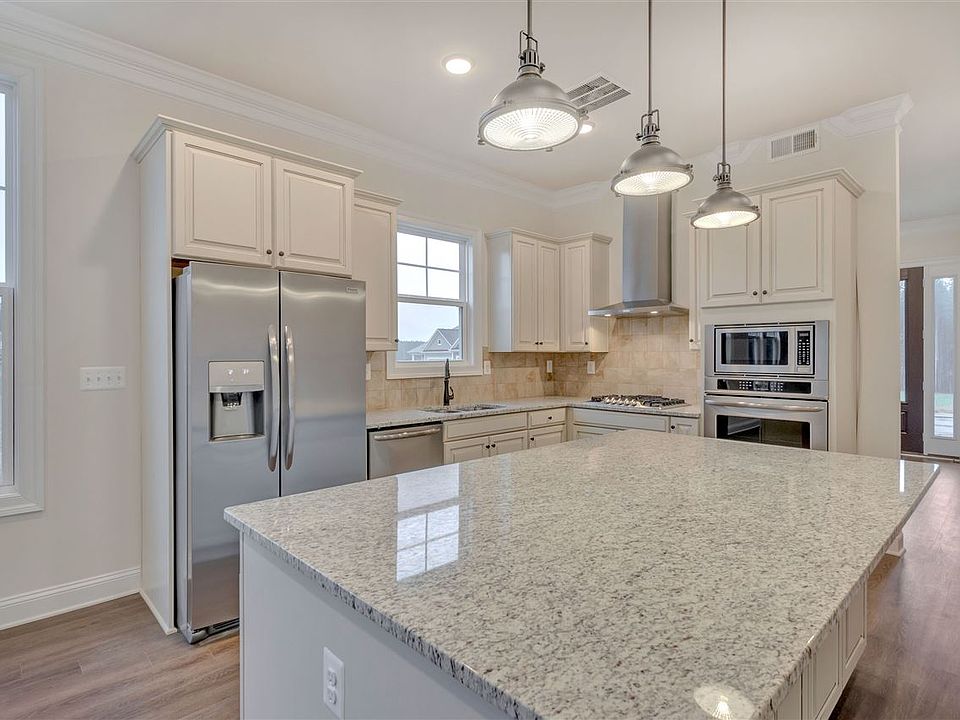 - Kitchen Appliances/Feat: Dishwasher, Disposal, Eat-in, Island, Refrigerator, Microwave, Gas Range, Recessed Light, Gas Cooktop