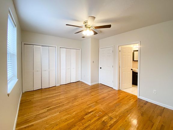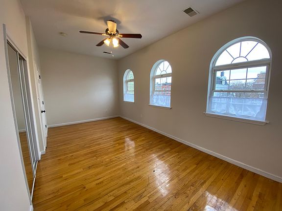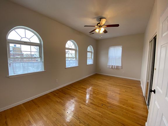 Spacious, sunny duplex on a quiet, tree-lined street in Bergen-Lafayette. Spectacular two-level roof deck with panoramic views of NYC skyline, and gas grill makes for joyous summertime entertaining. Master bedroom including ensuite bathroom, two additional king size bedrooms. Upstairs area is great for a work-from-home office or living room area, and the unit is pre-wired for Gigabit. Fios Internet. Full size washer and dryer and dishwasher. Central air, keyless entry, freshly painted. Near Berry Lane Park and Liberty State Park, approx. 7 minute walk to Garfield Light Rail Station. Landlord pays 1/2 fee, water and garbage removal. Sorry no pets or smoking. Credit report, pay stubs and proof of employment required.