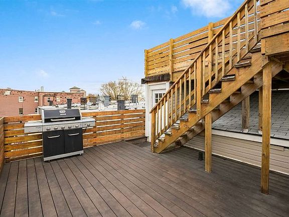 Very well maintained, renovated 2-family on a quiet tree-lined street in Jersey City's booming Bergen-Lafayette neighborhood. Both units have their own outdoor spaces: The owner's second floor duplex has access to a huge roof-top deck and terrace for your summer entertaining and relaxing, with amazing views of Manhattan, Brooklyn and the Statue of Liberty. This apartment has a lofted bedroom in the attic. The first floor apartment is also a duplex with exclusive access to the over-sized backyard and finished basement with full-sized washer and dryer, full bathroom, open floor-plan with a summer kitchen and plenty of storage. Basement can be used as additional living space or for entertaining. Similar layouts in both units with open kitchens with newer appliances. Hardwood floors throughout, 3 bedrooms , 2 baths with master bedroom suites. Separate utilities with central a c, forced air heat and separate water heaters. Great location with easy access to public transportation, light-rail or bus and close proximity to NJ Turnpike and Berry Lane Park. Outstanding opportunity for a seasoned investor to add to their portfolio or for an owner-occupant to start their real estate investment career. Call for a private showing today!