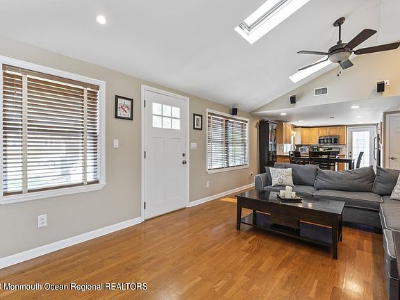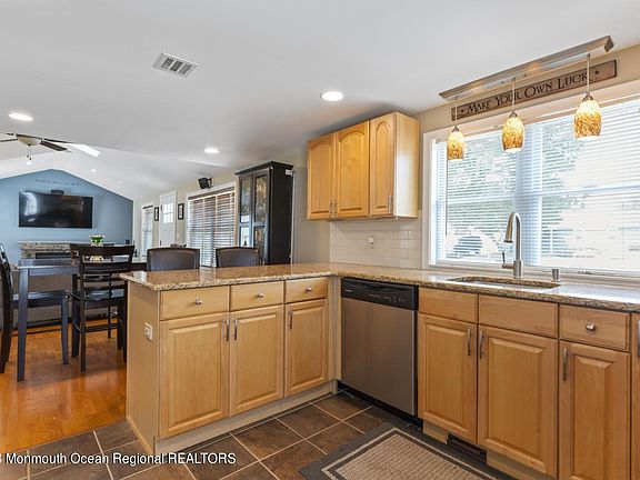 Cherry Quay, a secluded waterfront community, located in the Township of Brick, embodies the best of life at the Jersey Shore. Ride the bike path, hike the nature trails, sunbathe on the private bayfront beach, take your watercraft out for a spin, walk to the baseball fields and catch a game, or just relax in your own spacious and beautifully landscaped backyard, complete with fire pit, deck, and gazebo. Entering the home, you'll be pleasantly surprised by how spacious and airy it feels, thanks to the vaulted ceiling, skylights, and windows.