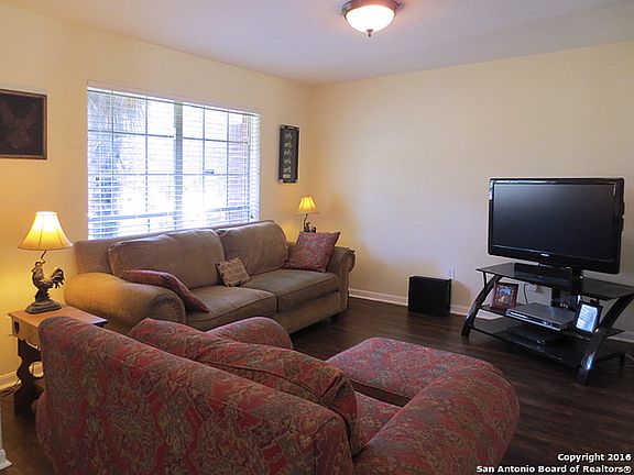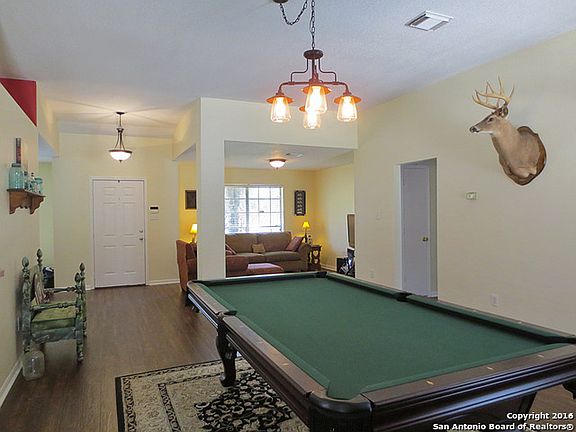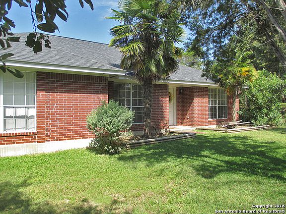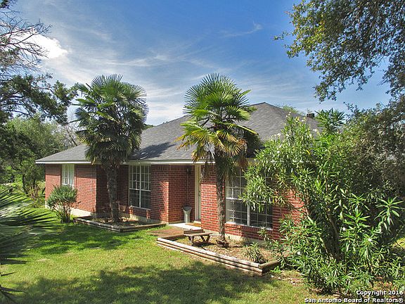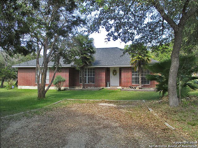 COMANCHE CLIFFS 3/2 brick home on 2.32 ACRES. This light-filled home has an open floor plan, wood burning fireplace, and room to roam. This 1,889 sq. ft. home has a flexible floor plan with two living areas, a dining room and eat-in kitchen. Nice and crisp, it is freshly painted and has new flooring; a new roof was installed in 2014. There are 2 homeowners private Medina River parks for kayaking, tubing and swimming. Located between Pipe Creek and Bandera it is within commuting distance to SA & Boerne.