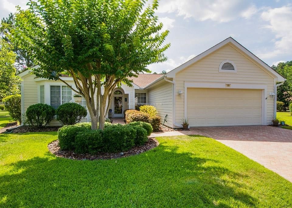 QUICK MOVE-IN! Popular Hamilton/Jefferson Model with extended Sun Rm. 2 Bedrms, 2 Full Baths and opt. 3rd BR/Office/Den, Dining Area & Breakfast Area. This home features Custom counters, Bay Windows, wood floors, inside Laundry Room with sink, brick paver Porch, Sidewalk & Driveway. New roof, Hardi-Plank exterior and 13' x 19' Sun Room with lots of windows. Sentricon Termite System, great curb appeal and much more! Don't let this popular floor plan slip through your hands! Come live the active lifestyle that Sun City has to offer in PARADISE here. This a short ride by golf cart, bike or car to the fitness center, pools, theater, & the Main Square of Sun City. Just lovely!