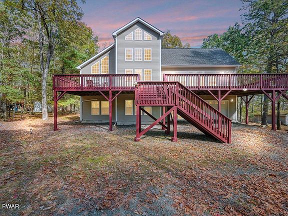 Custom-Built Chalet by One of the Area's Premier Builders!Perfectly situated on a flat lot within walking distance to the ski lodge and pools, this impressive home is being offered fully furnished and ready for you to move right in.This spacious chalet features 6 bedrooms, 3 full bathrooms, and multiple living spaces including a beautiful great room with cathedral ceilings and a fully finished basement-perfect for entertaining or additional guest space. The open floor plan highlights cathedral ceilings, hardwood floors, and beautiful windows that fill the home with natural light. The kitchen offers a huge pantry and new island, while each bedroom provides generous room sizes and plenty of closet space. Enjoy cozy evenings with three fireplaces and outdoor living on the massive front and partially covered rear wraparound deck.Additional features include a one-car garage and ample parking. Recently updated heating and cooling systems.Located in the highly desirable Masthope Mountain Community, residents enjoy outstanding four-season amenities, including: Skiing and a ski lodge with restaurant, Two outdoor pools and tiki bar, Motorboating lake with beach accessATV trails and Delaware River accessHorseback riding and fitness centerMiniature golf, sports courts, and year-round family activities