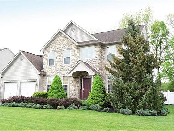 Meticulously maintained center hall colonial in quiet Maiden Creek community. This four bedroom beauty features over 2600 sf of living. Two story foyer is flanked by formal living room and dining room and is highlighted by a turned staircase leading to second level. Oversized eat-in kitchen offers plenty of cabinetry, pantry and center island and opens up to family room that boasts a stone fireplace. First floor office and laundry are bonuses. Upstairs you'll find a spacious Master bedroom suite complete with walk-in closet and luxurious bath with soaking tub. Enjoy those peaceful nights on the covered patio overlooking the treelined fenced yard.Conveniently located within minutes to Route 222. Move-in ready and waiting for its new owners!