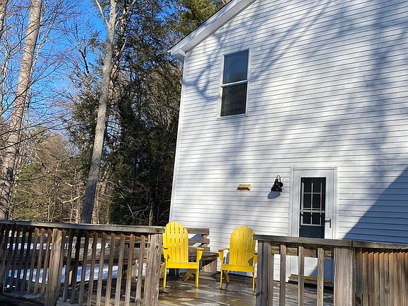 Pleasant and comfortable! Situated on the one way lane on the circle end of the pleasant Country Hill neighborhood in West Brattleboro, this comfortable six room, 1568 square foot, well cared for home was built in 2004 and offers three bedrooms and two and a half baths. On the first floor you will find a cheerful eat in kitchen with a tile floor and handy access to the 16’ x 16’ deck, a large living room with hard wood floors that opens to the light filled dining room and a half bath. Upstairs the primary bedroom has its own three quarter shower ensuite bath. Two bedrooms and a full bathroom are down the hall. The spacious 22’ x 19’ finished basement has a laundry area. There is a two car garage and a paved driveway. Mature trees and a stone wall ramble along the back border. Delayed showings until Saturday February 18, 2023,