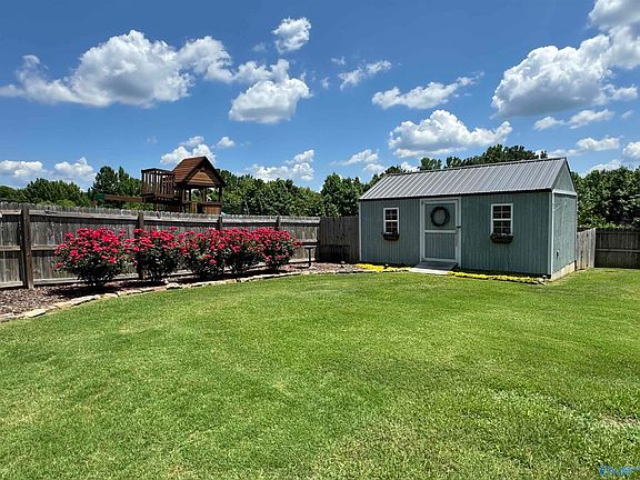 Like new, adorable home in a great location. Conveniently located to Huntsville, Guntersville, and Arab. 3 Bedroom 2 bath Open Floor plan with Custom Cabinets and Granite Counter tops in the kitchen! Hardwood Floors, Ceramic Tile, and Stainless Steel appliances. Large covered back deck that will bring crisp mornings to enjoy coffee or afternoon cook outs with friends and family. Small building with power for shop or storage. Fire pit area for evening relaxation. Extra wide driveway for RV or Boat parking. Updated master bath with Jacuzzi brand shower. All on a beautifully landscaped and sodded yard with privacy fence.