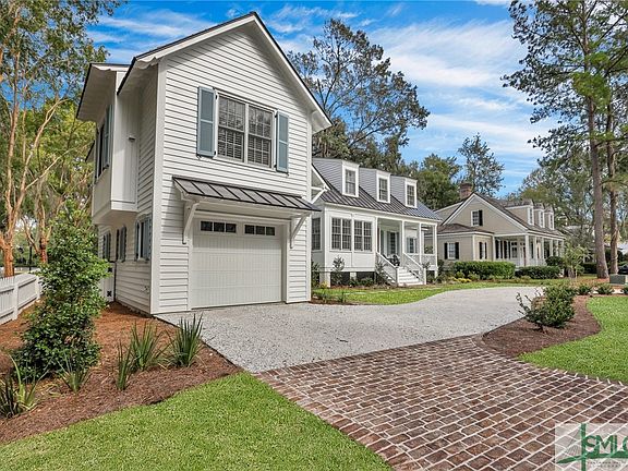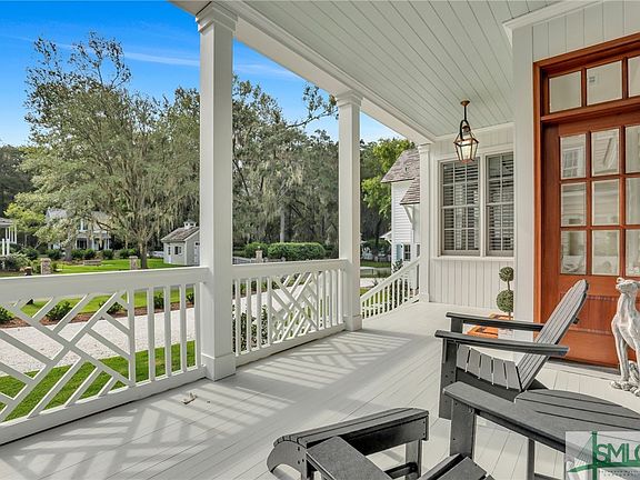 Welcome home to the exclusive Ford Field & River Club. This exquisite home features 4 bedrooms and 5 full bathrooms... 3 bedrooms / 4 full bathrooms in the main home and 1 bedroom and 1 full bathroom in the carriage house. Upon entry you will notice multiple custom upgrades throughout: all floors in the main living area are of heart pine, with the living area coffered ceiling also constructed of heart pine. Plantation blinds and mosaic tile work touches throughout. Access to the rear porch is granted through a very large accordion glass door with heart pine frame trim. The rear porch has remote plastic drapes for four season room. The home has two primary suites: one on main level and one on second level. A spacious rear screened-in porch (equipped with a gas fire place) allows for entertainment of multiple guests. Carriage house is equipped with a mini kitchen. Enjoy beautiful sunrise views of the stunning Ford Field & River Club golf course, as the home sits on the 9th fairway.