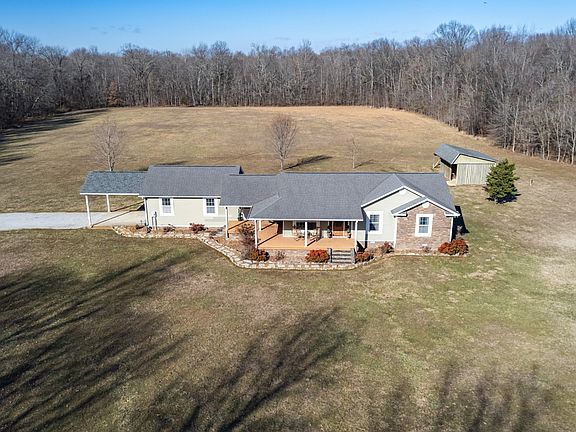 Nature Lover’s Paradise! Welcome to your dream retreat! Nestled on almost 13 acres of natural beauty, this home offers the perfect blend of serenity and modern living. Imagine sipping your morning coffee while deer graze peacefully in your yard—a true nature lover’s paradise. Step inside and be greeted by a warm, inviting den featuring accent wood walls, a cozy fireplace, and thoughtful touches that make this house feel like home. The wet bar and built-in coffee bar are standout features, designed to simplify your mornings and elevate your entertaining. The kitchen is a showstopper, boasting sleek quartz countertops, tall ceilings, and modern white cabinetry. The dining room area provides plenty of space making it perfect for both relaxation and hosting gatherings. Each bedroom offers spacious closets and large windows that flood the rooms with natural light, creating bright and airy spaces for relaxation. Outside, the charm continues. The expansive front porch invites you to unwind and take in the peaceful surroundings, while the large 40X30 garage provides ample storage for all your tools, toys, or hobbies AND a 24x16 shed for even more storage. This home is more than a place to live—it’s a lifestyle. Whether you’re hosting friends, enjoying quiet mornings, or exploring the outdoors, this property offers it all. Don’t miss your chance to own a slice of paradise!