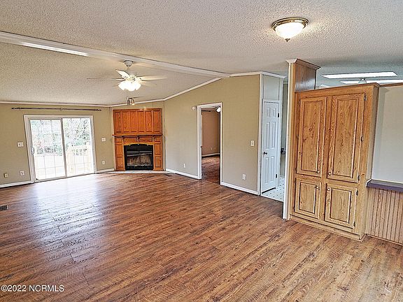 This move-in ready, single level, 3 bedroom, 2 bath, split-bedroom floor plan home in Bellhammon Plantation offers an .80+ acre lot that backs up to a beautifully wooded conservation easement. If you enjoy a boating lifestyle, Bellhammon Plantation is only a few miles from the Pender County boat ramp on the NE Cape Fear River. Upon entering the home, you will notice the laminate and LVP flooring throughout. The generously-sized great room offers a beautiful wood-burning fireplace and sliding door access to a new back deck. The built-in cabinet and beautiful bay window are special touches. Sunlight, cabinets, and counter space are plentiful as the kitchen is complete with not only an island, but a counter bar, a built-in desk/buffet area, a pantry, and skylights. How convenient that all the appliances convey including the front loading washer and dryer. The side entrance offers ease of unloading groceries or inviting guests into the dining area. A spacious primary bedroom suite includes newer windows, a good size closet, and a private bathroom with dual vanity, garden tub, and separate shower. Two additional bedrooms and a full bath are tucked away on the other side of the home. Bellhammon Plantation is professionally managed and requires low Homeowners Association dues. Imagine a new life with plenty of space to make it your own!