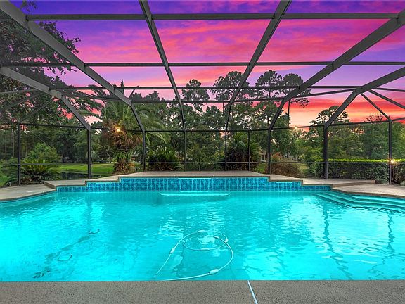WOW! Discover the perfect blend of privacy, nature, and luxury on 1.39 acres (TBV) with an impressive 450 feet of lake frontage—and no HOA to limit your lifestyle. Enjoy breathtaking sunsets from your private 18x32 in-ground pool, beautifully enclosed within a spacious 40x41 screened lanai—perfect for relaxing or entertaining. Inside, the home features a bright, open floor plan with 4 bedrooms and 2 bathrooms. High ceilings and plantation shutters throughout add elegant touches, while the epoxy-finished side-entry garage with wood siding interior walls provides durability and style. The primary suite offers a peaceful retreat with a tray ceiling, spacious tile walk-in shower, soaker tub, and double vanity. A split floor plan ensures privacy, with three additional bedrooms located on the opposite side of the home, each equipped with custom closet systems to maximize storage space. Step outside to a lush tropical landscape, highlighted by mature canary palms and a fruit-bearing citrus tree—perfect for picking fresh fruit right from your yard. Nature lovers will be captivated by the vibrant wildlife the lake attracts—watch osprey perch in the trees, wood storks sunning along the shore, or bluebirds fluttering at the feeder. There's always something beautiful to enjoy. This well-maintained home is ready for a new owner to move in and unwind. Don't miss the chance to experience lakefront living at its finest. Coastal living where flood insurance is not required, the roof is 6 years old, the HVAC is 7-8 years old, and the water Heater is 5-6 years old.