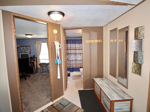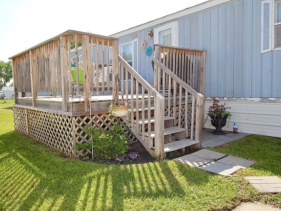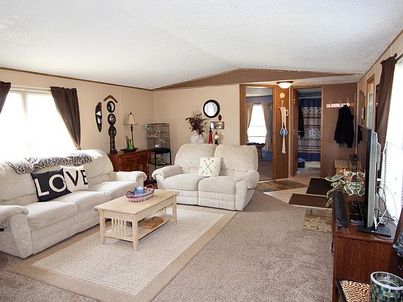 Come see this 2 bedroom, 2 bathroom mobile home with a open concept kitchen, dining, and living room with a HUGE master bedroom!! Walking in from the large deck through the front door you will find cute entry area that opens right into the bright and spacious living area. There is a nice sized bedroom and full bath off the living area. The kitchen has a large breakfast bar, a tasteful back splash, new sink, as well as an eat in dining area. Down the hallway you will find a centrally located laundry room and the master bedroom with a walk in closet and full bath. Roof repairs and new shingles, new carpet throughout, replaced all floor registers and light fixtures were all done in 2015. New ownership has shared exciting updates to boost curb appeal and a new park has been installed this fall! Call your favorite realtor today!