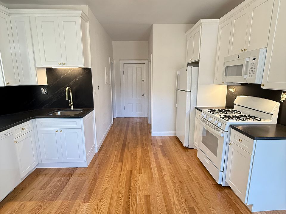 The eat-in kitchen features brand new appliances, leathered granite countertops with a full backsplash, stylish gold fixtures, and beautiful lighting. You'll love the new hardwood floors, soaring ceilings, and large windows that fill every room with natural light.