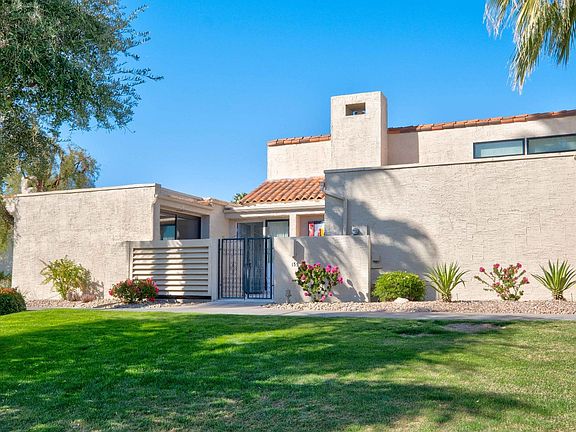 Fully Furnished Property with great 3 bedrooms and baths, home overlooking the golf course at Mission Hills CC. A courtyard entry leads you into an open, bright great room with a towering wood beamed ceiling a clerestory window, & a stone faced fireplace. The great room is perfect for entertaining, with a prep area & counter seating for a crowd, also additional features include, new dual pane windows, and sliders recently installed, and more. One of the many pool & spas is steps away outside your rear patio. Mission Hills CC is an award winning club with 3 legendary golf courses, a driving range, 34 tennis courts, Bocce ball, fitness center and a 17,000 sq ft spa. This very clean Mission Hills property is a definite must see, and one not to miss.