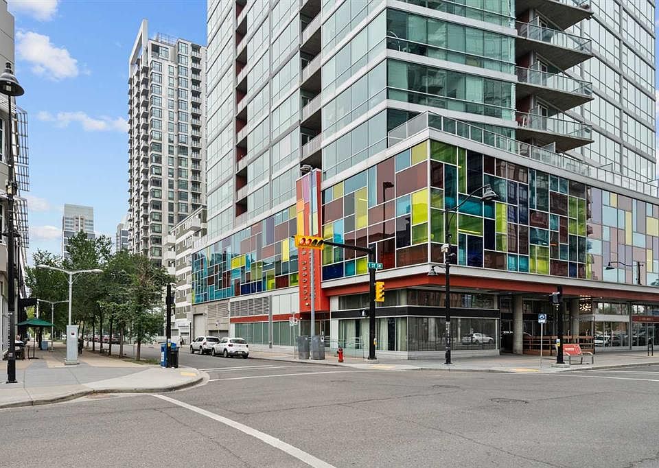 Perched high on the 16th floor of Colours in Calgary’s vibrant Beltline, this stylish end unit offers an urban lifestyle wrapped in unforgettable views. Floor to ceiling windows flood the open layout with natural light while framing iconic cityscapes including the Calgary Tower and Stampede grounds. The modern kitchen blends design with function, featuring stone counters, stainless steel appliances, a peninsula island with seating and direct access to the balcony where summer barbeques can be enjoyed against a skyline backdrop. The dining area is perfectly positioned to take in the twinkling lights of downtown while the adjacent living room provides a relaxing retreat with ever-changing vistas. A private bedroom pairs with a 4-piece bathroom finished with stone counters and in-suite laundry adds everyday convenience. Polished concrete floors, central air conditioning and secure heated underground parking enhance comfort and style. From your balcony, watch fireworks light up the sky and soak in Calgary’s energy from a personal vantage point. Outside the building’s door, discover one of the city’s most dynamic neighbourhoods with premier dining, pubs, coffee shops and shopping steps away, along with Central Memorial Park, Haultain Park tennis courts, the Stampede grounds and the nightlife of 17th Avenue. With pet-friendly and short-term rental friendly policies upon board approval, Colours is a community that embraces flexibility. This residence balances design, comfort and location, offering a truly connected downtown lifestyle!