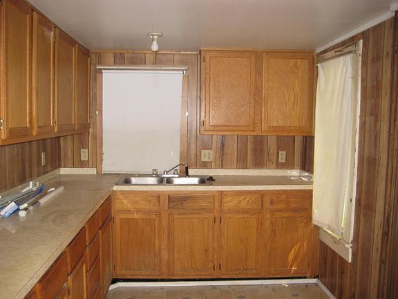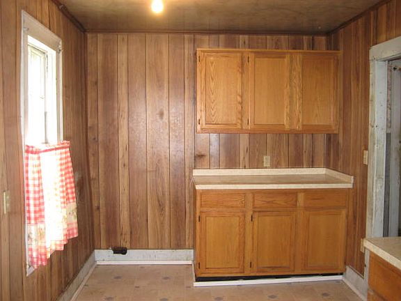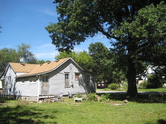 Sets on a corner lot, 1 bedroom, 1 bath, gas wall furnace, 2 window units, covered front porch 1 block from Main Street. Walk to the post office. New roof in 2010, 2 new ceiling fans in 2010. Roomy kitchen with many oak cabinets and lots of counter space. Dining Room, Laundry room, Living Room. Drive in and park in the back, driveway on the side. Large mature trees in yard. Vinyl siding.