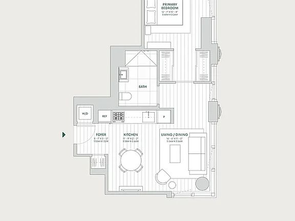 The D-line boasts the largest bedroom among all one-bedroom layouts in the building.