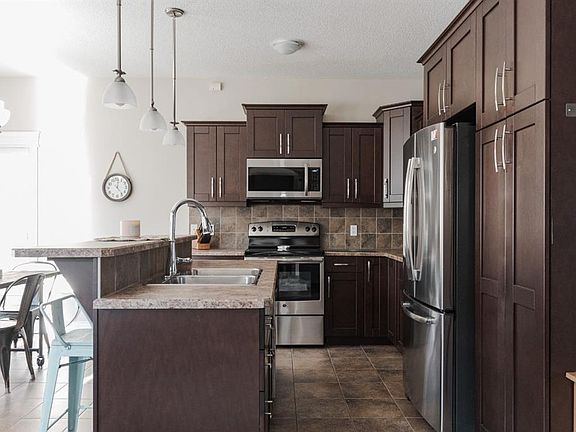 Welcome to 135 Crane Place, a beautifully maintained two-storey home with unbeatable parking for six vehicles or recreational storage, perfectly situated in a quiet cul-de-sac in the heart of Eagle Ridge. Built by Winchester Homes and owned by the same family for the past decade, this property offers exceptional value and incredible convenience -a stones throw from schools, shopping, restaurants, playgrounds and the movie theatre in Eagle Ridge Commons. Known for its walkability, beautiful streets and family-friendly atmosphere, Eagle Ridge remains one of Fort McMurray’s most sought-after neighbourhoods for families and professionals alike. The home’s curb appeal begins with a charming covered front porch and a long driveway with space for four vehicles or your enclosed trailer, leading to an attached and heated 22x24 garage. Inside, a bright and functional layout welcomes you. The main floor features a spacious open-concept living room with a cozy gas fireplace and updated luxury vinyl plank flooring, a well-designed kitchen with an eat-up island, under-cabinet lighting, and stainless steel appliances including a gas stove, plus a dining area that overlooks the sunny backyard. The convenience of a two-piece bathroom and main floor laundry with a sink and pantry storage adds everyday practicality. Upstairs, you’ll find three comfortable bedrooms, each with its own walk-in closet. The primary suite offers a large five-piece ensuite complete with a jetted soaker tub, double sinks, a separate shower, and generous closet space. Natural light fills the upper level, and custom window coverings provide both privacy and style. The lower level adds even more versatility, with access through the garage to a self-contained living space that includes a kitchenette with white cabinets, a large family room, and one bedroom with a three-piece ensuite. Though not a legal suite, this space is ideal for extended family, guests, or additional living area. The basement also features in-floor heat rough-in and an insulated subfloor for extra warmth and comfort. Additional updates include a new furnace installed in 2023, hot water on demand and a water softener added in 2017, and central air conditioning for year-round comfort. The heated double garage includes a built-in loft for storage, a workbench, and cabinetry, offering great flexibility for projects and organization. Outside, the private backyard is fully fenced, puppy-proof, and designed for entertaining. There’s a gas line for your barbecue, a dining area with the included BBQ gazebo, two sheds for storage, and a fire pit area completed in 2023. The yard enjoys plenty of afternoon sun, complemented by mature landscaping including a flowering crab tree and lilac bush.With its ideal location, thoughtful updates, and family-friendly charm, 135 Crane Place offers a lifestyle of comfort and convenience in one of Fort McMurray’s most loved communities. Schedule your private showing today.