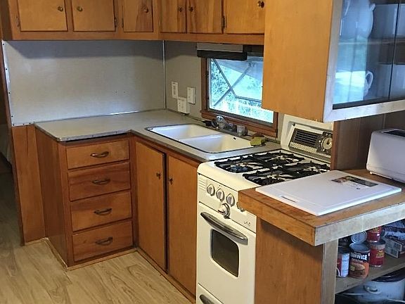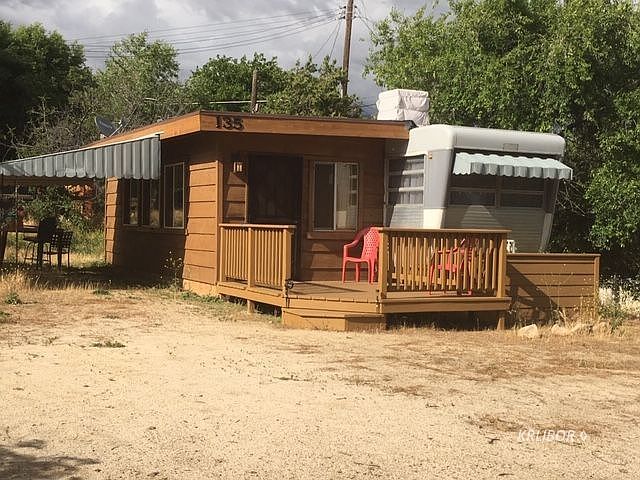 This home is ready to move in. The furniture is included, if you want it. The water heater, garbage disposal, refrigerator, swamp cooler, plumbing and electric, windows in the room addition, the outside deck and interior flooring were replaced 2 years ago. This super cute older mobile has a nice sized addition that makes a wonderful living room with wall furnace. There's a walk-through bedroom into the 2nd bedroom, and a full bath. Kitchen has everything you need! Deck with view of Isabella Lake, and across the street from Tillie Creek. Close to Wofford Heights park and the Lake. Charming!!