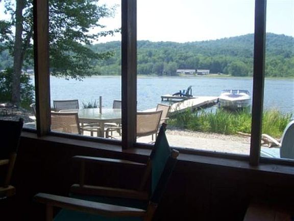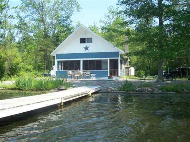 Sure to delight! ~ The "Spirit of Summer"! A lovely private approach to your three season lake hideaway. Make your memories and enjoy some down time. All the comforts of home; cathedral ceilings, rustic beams, first floor bedroom, galley windows, loft like sleep areas, and gas fired insert. Classic lake living with the amenities you require. Sleeping porch and patio entrance enhance outdoor living areas. Furnishings included. Owner will entertain all reasonable offers including owner financing. Excellent Condition