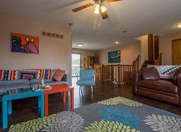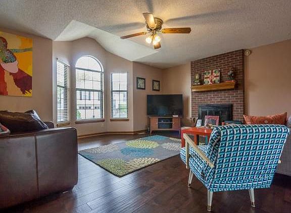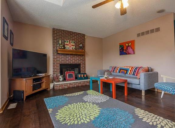 Beautiful hard wood throughout. Tile in bathrooms. Open concept with living/kitchen areas. Great counter space in kitchen and brick fireplace in living room. Walk-in closet in master. Finished basement with half bath and bonus room that can double as an office! Large deck and kids play set outside. Close to neighborhood pool and basketball courts!