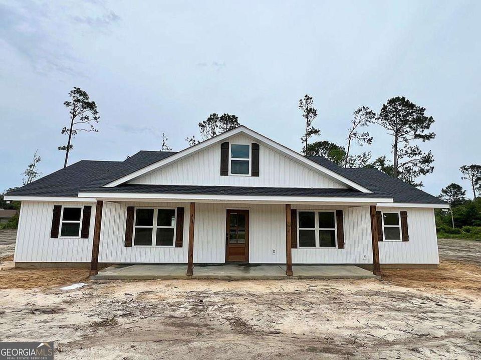 Step into this stunning newly constructed home nestled near schools and shoppes. With 1,590 sq ft of thoughtfully designed living space on a .91-acre lot, this 3-bedroom, 2-bath home is the perfect blend of comfort, style, and convenience. The living room features a vaulted ceiling with rustic pine accents and a cozy mounted LED fireplace, creating a warm, inviting atmosphere. Throughout the home, you'll find beautiful Luxury Vinyl Plank flooring, gleaming granite countertops, stained knotty pine doors, and elegant ceramic tile in the modern bathrooms. The custom kitchen is both stylish and functional with built-in cabinetry, a spacious pantry, and new appliances. The luxurious primary suite boasts a warm modern bathroom and a large walk-in closet with custom storage. Enjoy energy efficiency with spray foam insulation and a new Trane HVAC. Relax outdoors on the spacious porches and large carport with tongue-and-groove ceilings and designer lighting. Call 912 253 9791 today for a tour!