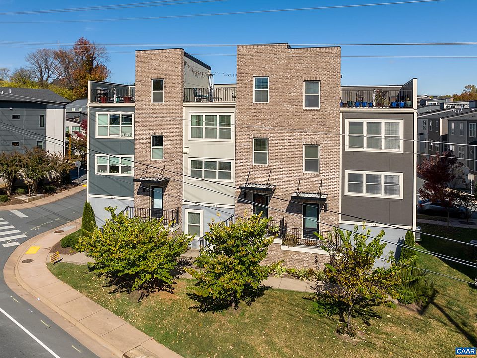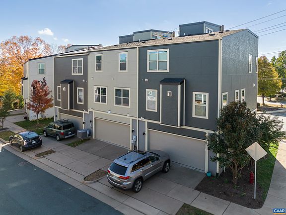 Fabulous City of Charlottesville townhome walkable to IX Art Park, Downtown Mall, ACAC and more! You'll LOVE the rooftop terrace with the incredible Carters Mountain views in this contemporary home! Enjoy the open floor plan with modern kitchen, quartz countertop, stainless appliances and open living space. Open dining and living areas with hardwood floors throughout are perfect for entertaining. Head upstairs to the bedroom level featuring a spacious owners suite with ensuite bathroom featuring large frameless glass shower, and walk in closet. Two additional bedrooms share a full hall bathroom, and the laundry is located on this floor too! The ground floor has a fourth guest bedroom/office with full bath and access to the two-car garage. Get away from it all on the top floor on the stunning rooftop terrace with motorized awning, and space for a secluded office or hideaway reading nook! Energy efficient construction with many green features plus premium upgrades and neutral paint throughout!