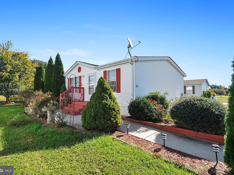 Welcoming 3Bed 2FullBath home in quiet, peaceful, pet friendly Barkers Landing conveniently located close to RT1, Dover Air Force Base, and Bowers Beach. Lovely outdoor front and rear patios for enjoying the outdoors and conversing with friends. Large living room with cathedral ceilings, wall tv and fireplace, separate dining room, dual sink kitchen with breakfast area, separate laundry room with washer and dryer. Primary bedroom has walk in closet, attached ensuite with dual sink vanity, separate shower and soaking tub. Leased 12x8 outdoor shed can be assumed by new owner $168/mo or seller can make arrangements to have removed prior to settlement. New roof in 2023. New carpet in Primary and 3rd Bedrooms. Buyer must apply with front office for park approval and pet considerations in advance.