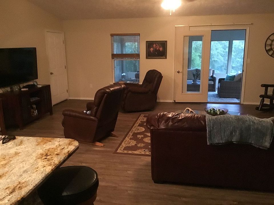 FOREST PARK 3 BR 3 BA HOME with walk out finished basement featuring 2 complete living quarters nestled on 3.75 acres m/l and additional 30'x23' detached garage/workshop. The home features a great room plan upstairs, vaulted ceilings, 2 bedrooms/split plan, year round sun room, and a full finished basement with family room, 1 BR, 3/4 BA, full kitchen, its own utility room and screened porch.