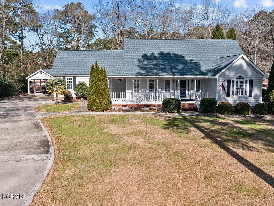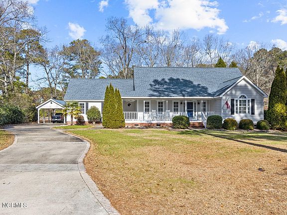 Spectacular views of the golf course from your own back yard with this custom oasis neatly appointed on a private cul-de-sac in the sought after Country Club Estates neighborhood. IMMACULATE 4 Bedroom, 2.5 Bath, with attached 2 Car Garage and whole house generator accented with traditional Hardie Board Plank Siding. Built in 2002, and meticulously remodeled in 2021, you are welcomed by the winding concrete drive accompanied by palm tree and wrap around porch. The foyer greets you with refinished oak hardwoods and custom plantation shutters. Cozy up in the living room with the temperature-controlled Duluth Forge gas log fireplace as you relax to the built in entertainment center and corner beverage bar with vaulted ceilings. The kitchen illuminates Alpine White Corian countertops, top of the line appliances, easy close cabinetry, and convenient pantry. An entertainers delight offering eat in bar area, breakfast nook, formal dining room, and enclosed sunroom tailored with wired surround sound system. Expansive laundry room with utility sink and an abundance of storage shelving. Spacious owner's suite with walk in closet encompassing organizational built ins. Master bathroom exhibits upscale lighting, walk in tile shower, and luxurious bidet. Must see the artwork on the wall of the half bath which is a longtime conversation piece and enormous walk-in attic. Many updates to include new 4-ton Trane HVAC with all new ductwork, new tinted architectural shingles, new garbage disposal, new detached carport with built-in golf charger, new ceiling fans, new hardware accessories and light fixtures, new 3-way venting, and the list goes on and on. Outside is equally impressive with grilling patio, pergola, and storage shed. Propane is full and ready for your move! Located just a short drive from Washington Yacht and Country Club for fine dining, tennis, pool, golf, and large marina on Broad Creek.