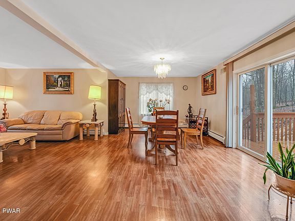 BEAUTIFUL 2 STORY CONTEMPORARY IN THE PRIVATE, GATED COMMUNITY OF WILD ACRES LAKES IN PIKE COUNTY PENNSYLVANIA! Welcome home to your 3 bedroom, 3 bathroom open concept property in a community that offers 7 lakes stocked with fish, beaches, playgrounds, recreation areas, 2 outdoor pools, and more! Inside, immediately appreciate the immaculate presentation. An entertainer's dream with a huge living and dining room combo with a an adjacent and separate family room offers maximum space for hosting parties with family and friends! The kitchen is truly the heart of this home with a stainless steel stove and fridge! A tiled guest bathroom truly makes a statement. Follow the stunning parquet flooring upstairs to your primary bedroom, two guest bedrooms, and guest bathroom. An unfinished lower level provides potential to finish it in the future or just use for storage, a gym, home office or for whatever suits your needs! A walk-up attic also provides more space for easy to access storage. HOUSE ALREADY HAS DUCT WORK FOR CENTRAL AIR! Listing agent is providing a FREE 1 YEAR HOME WARRANTY FOR THE BUYER! Schedule your private showing today!