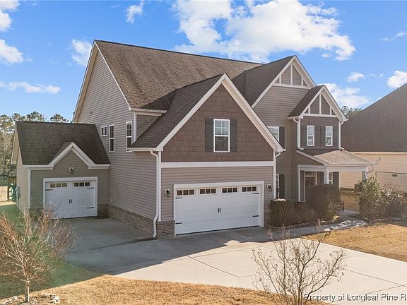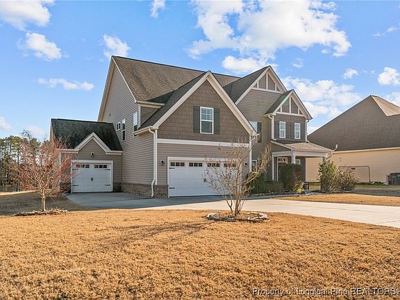 This beautiful rural dream home sits on a spacious lot with a pond view, yet is conveniently near the military base. The Oxford (Craftsman) plan includes 4 bedrooms, 3 baths, and a game room. Upgrades feature dark vinyl siding with shake/brick accents, covered porches, and a two-story foyer with a picket wall staircase. The great room includes a gas log fireplace and ceiling fan. The kitchen has wood cabinets, granite countertops, stainless steel appliances, a breakfast bar with 3 pendant lights, an informal dining area, and a pantry. The formal dining room has a coffered ceiling, and the mud room includes a bench. Hardwood floors are in the foyer and dining room, with carpet in the living areas, and vinyl in the kitchen, mud room, pantry, bathrooms, and laundry. The master suite on the second floor includes a tray ceiling with a fan, double sinks, a garden tub, shower, commode room, sitting area, and a walk-in closet. All bedrooms, the great room, and the game room are pre-wired for ceiling fans, the Air Scrubbers and the Whole-house gutters included.