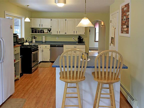 A cute, traditional cape located just a short walk to Chester's charming village. Sited on a hillside with stone walls and valley views, this home has wonderful light and southern exposure. Many windows, curved walls, two enclosed porches and a large deck add unique details and year-round enjoyment to the house. The bedroom on the main level can be used as a master or larger family room. Convenient features for outdoors people include a large mudroom, perfect for storing all your equipment. The attached two-car garage makes it easy to return home on a cold winter's night. Beautiful Flamstead Road offers lovely walks past working farms. The historic Stone Village is just around the corner, with sidewalks right to the neighborhood market, village green, elementary school, library, bank and shops. A versatile property, this home would make a great primary home, complete with small barn, wood shed and chicken coop or weekend house, being located only twenty minutes to Okemo with easy access to Interstate 91.